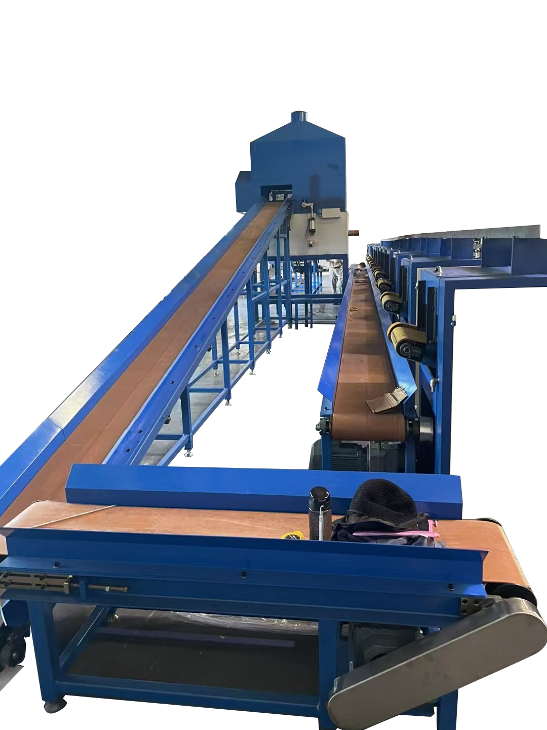 (4)废料输送机具有一定的长度,主要是为了方便维护与更换,输送皮带总共分成3段进行输送。